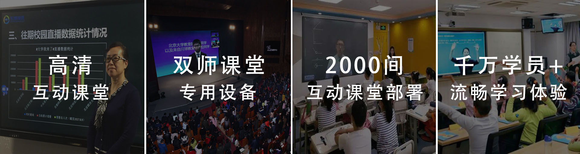 从2016年开始,双师课堂教学模式开始在市场中正式被推出并应用,并呈现直线上升的发展趋势。双师课堂的实现采用高清互动教学系统,老师在专用的教学直播间或教室内授课,通过互动教学云平台学生端实时的与讲课端实现双向的高清音视频互动,配置双师课堂专用终端,120寸抗光幕布高品质真人比例还原教学环境。